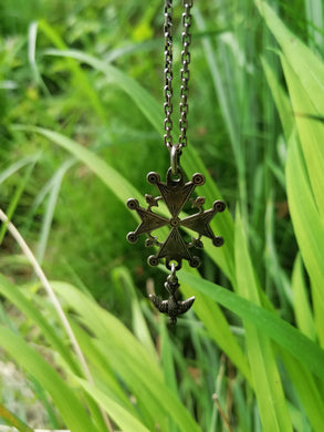 Belle croix huguenote ancienne, en argent massif avec chaîne