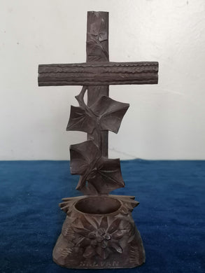 Bénitier en bois sculpté début XXème art populaire Suisse Valais Salvan