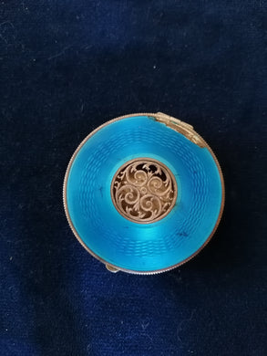Boîte à poudrer, argent et émail bleu. Travail autrichien début XXème.