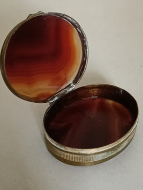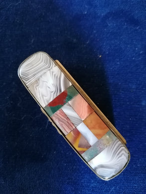 Boîte à tabac à priser Agathe et marqueterie de pierre semi précieuse. Probablement vers 1930
