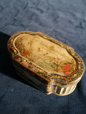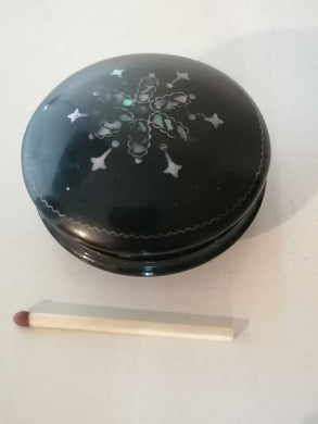 Boîte ancienne, papier mâchés et laqué avec incrustations nacre