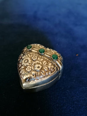 Boîte ancienne argenté avec interieur doré, métal repoussé.