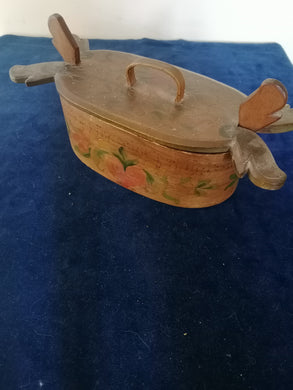 Boîte en bois cintré, peint et pyrogravé. Art populaire suédois début XXème