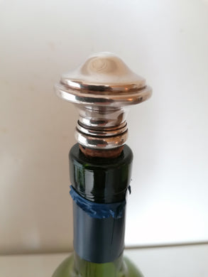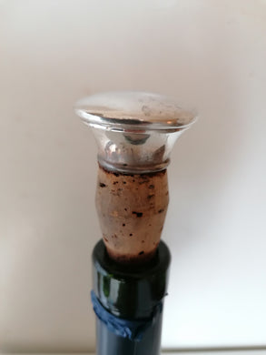 Bouchon argent massif et liège, pour carafe ou bouteille.