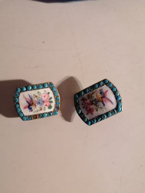 Bouton de manchette russe laiton peint et émaillé à la main. Fin XIXème