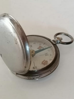 Boussole ancienne, sur plaque en nacre, système de blocage de l'aiguille