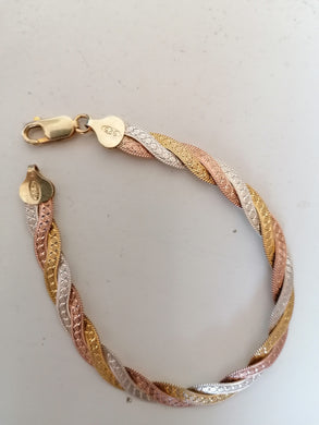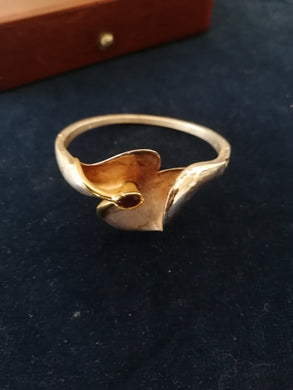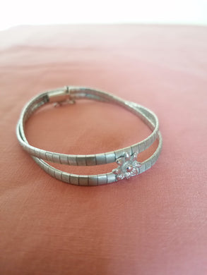 Bracelet en argent massif design, fleurs doré et cristal taillé.