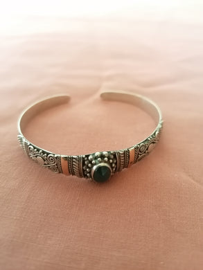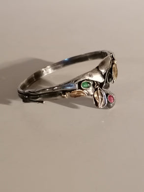 Bracelet en argent et pierres, parties des feuilles doré. Travail très fin probablement nordique
