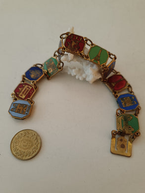 Bracelet souvenir de Paris vers 1900 laiton doré et émaillé.