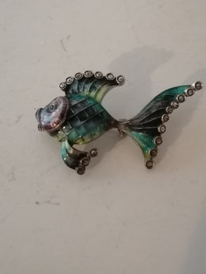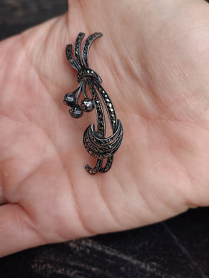 Broche oiseau en argent émail et marcassite. Quelques manque