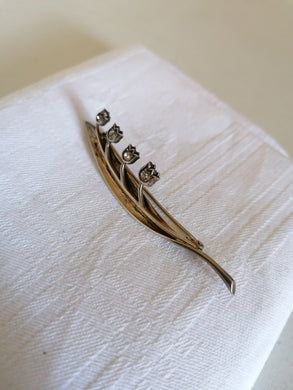 Broche muguet en argent avec cristaux taillé. Fin XXème