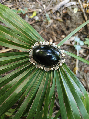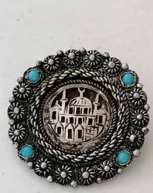 Broche ou boucle en bronze tibétin avec turquoise au centre. Début XXème