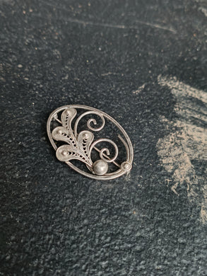 Broche fleur de lys argent noirci et doré . Début XXÈME