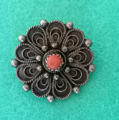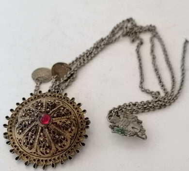 Broche péru argent et or massif avec décors traditionnelle. XXème