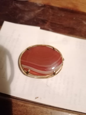 Broche, pendentif et passant de foulard. Agathe et métal doré