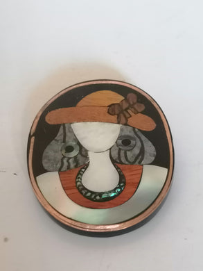 Broche style art nouveau marqueterie nacre et bois