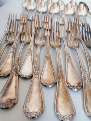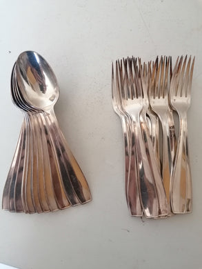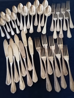 Christofle 38 pièces argenté, service à poisson 12 pièces, cuillère à thé et entre mets.
