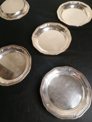 Christofle 5 dessous de bouteille en métal argenté. Parfait état.