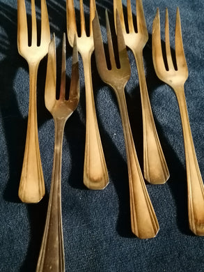 Christofle argenté et vermeil, série de 6 fourchettes à entre mets.