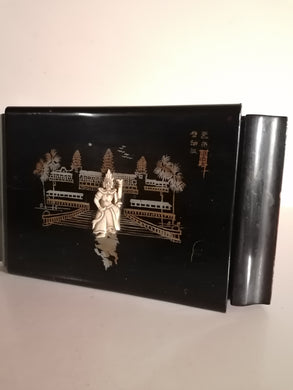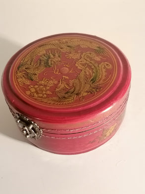Coffret à bijoux chinois motif dragon, peinture sur cuir .