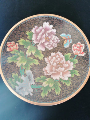 Cloisonné chinois assiètes, décors pivoine de très. belle fabrication.
