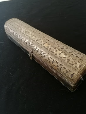 Coffret à écrire plume, porte mine et cachet en alpaca (métal blanc qui ressemble à l'argent, ne s'oxyde pas.