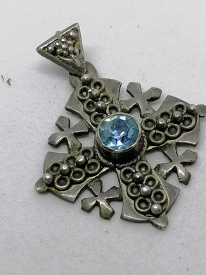 Croix pendentif en argent avec cristaux. Manque une pièce.