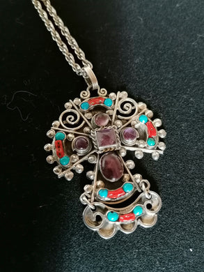 Croix Mexicaine en argent et pierre semi précieuse