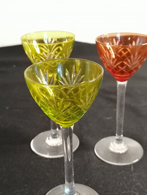 Cristal de bohème, 3 verres à liqueurs.