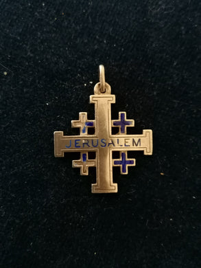 Croix de Jerusalem en argent massif et émail bleu.