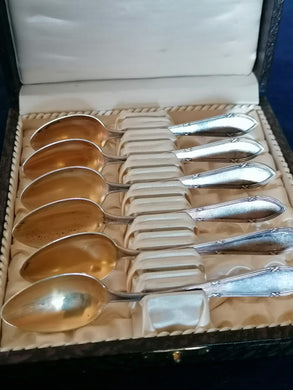 Cuillère à glace en argent massif et doré , modèle florale genre Rococo, Allemagne début XXÈME