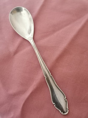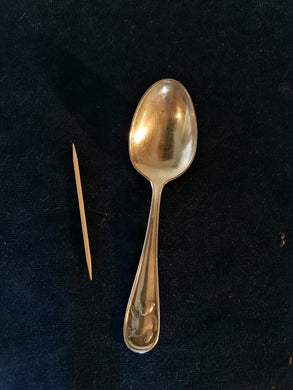 Cuillière à dessert argenté, design espagnol Meneses monogramme calligraphie inhabituelle.
