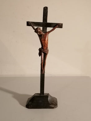 Crucifix en bronze avec son cadre d'origine. Fin XIXe