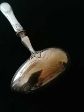 Cuillère à sucre glace ou olive, manche argent d'époque Art nouveau
