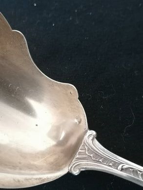 Cuillière de service américaine en argent massif dite bon bon spoon ou nut spoon. Pour les morceau de chocolat ou noix.