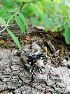 Curieuse bague en argent, travail amateur avec 2 pièce différentes