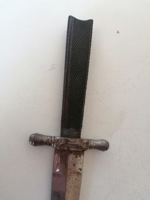 Dague de vertue ancienne dite pic couille.. Manche bois noirci lame acier et bout cassé.