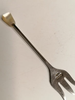 Fourchette à hors d'œuvre, manche argent et pic doré.