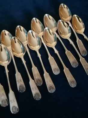 Maître orfèvre Wild Allemagne vers 1820 grande cuillère à soupe en argent massif . Poinçon de maître . Initiales familles HL