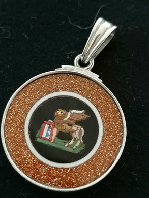 Micro mosaïque italienne, lion de Venise avec sunstone. Monture argent