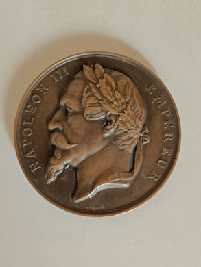 Napoléon III Égypte, canal de suez, grosse médaille en bronze. Quelques coups sur la tranche et reste de colle .. 173g de bronze , fin XIXÈME