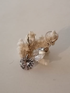 Paire de boucle d'oreille doré et solitaire en cristal taillé.