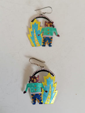 Paire de boucle d'oreille en argent émaillé pour enfant dans le style de laurel burch.