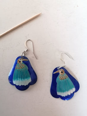 Paire de boucle d'oreille en argent émaillé, décors paon