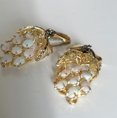 Paire de boucle d'oreille doré fantaisie, avec opale en verre.