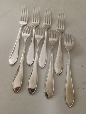 Jezler la Reine série de 8 fourchettes à entre mets ou salade, en argent massif 0.800. très bon état général . 237g