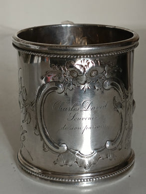 Gobelet en argent massif, ciselé début Xxème avec monogramme.