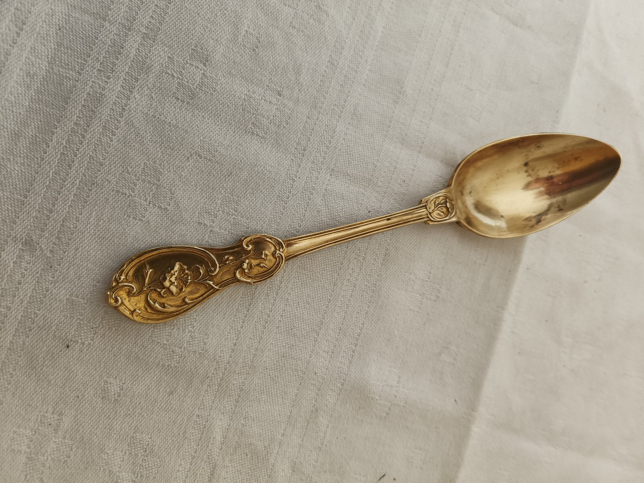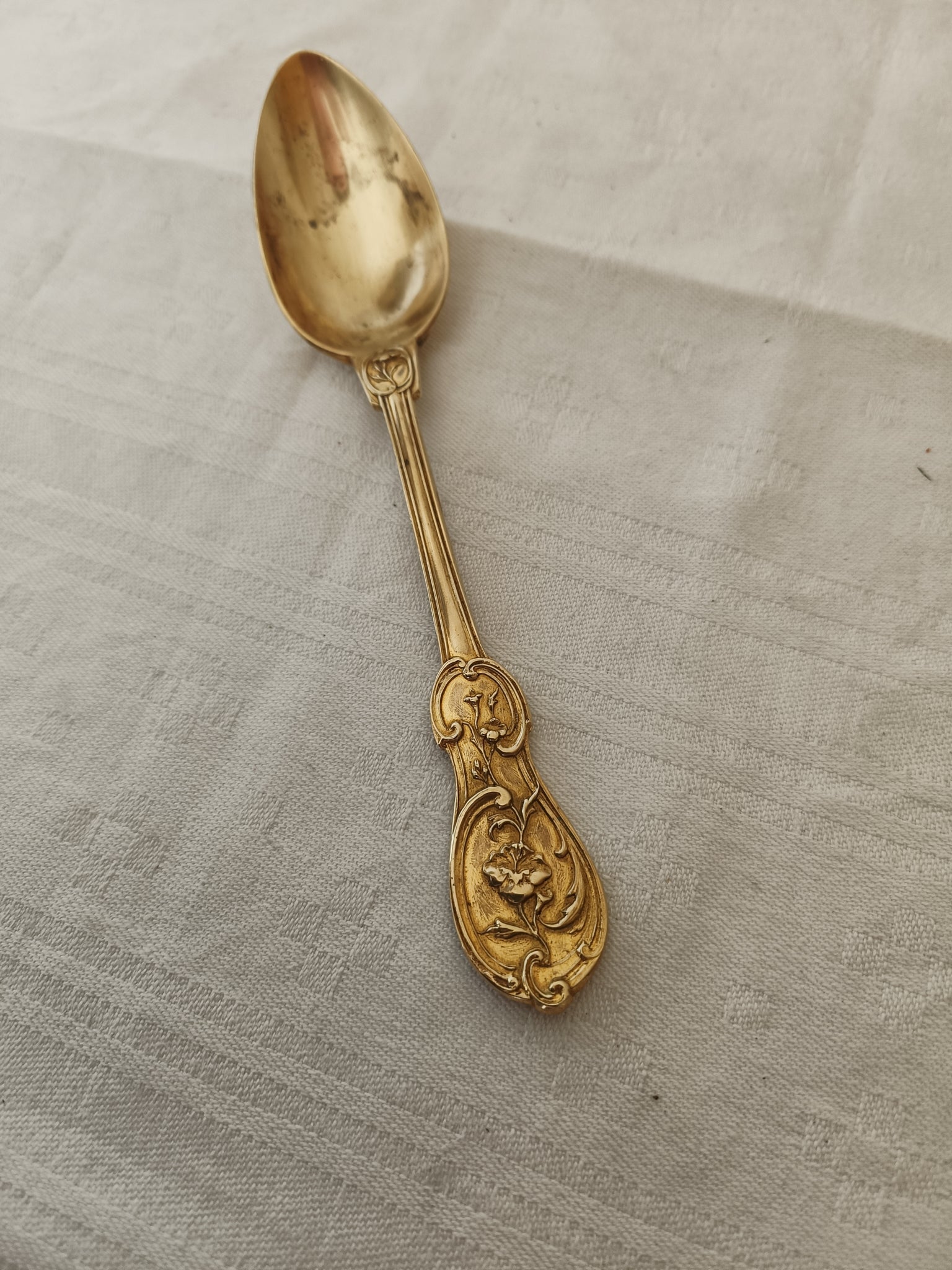 Charmante cuillère à dessert dorée , style Louis XV.