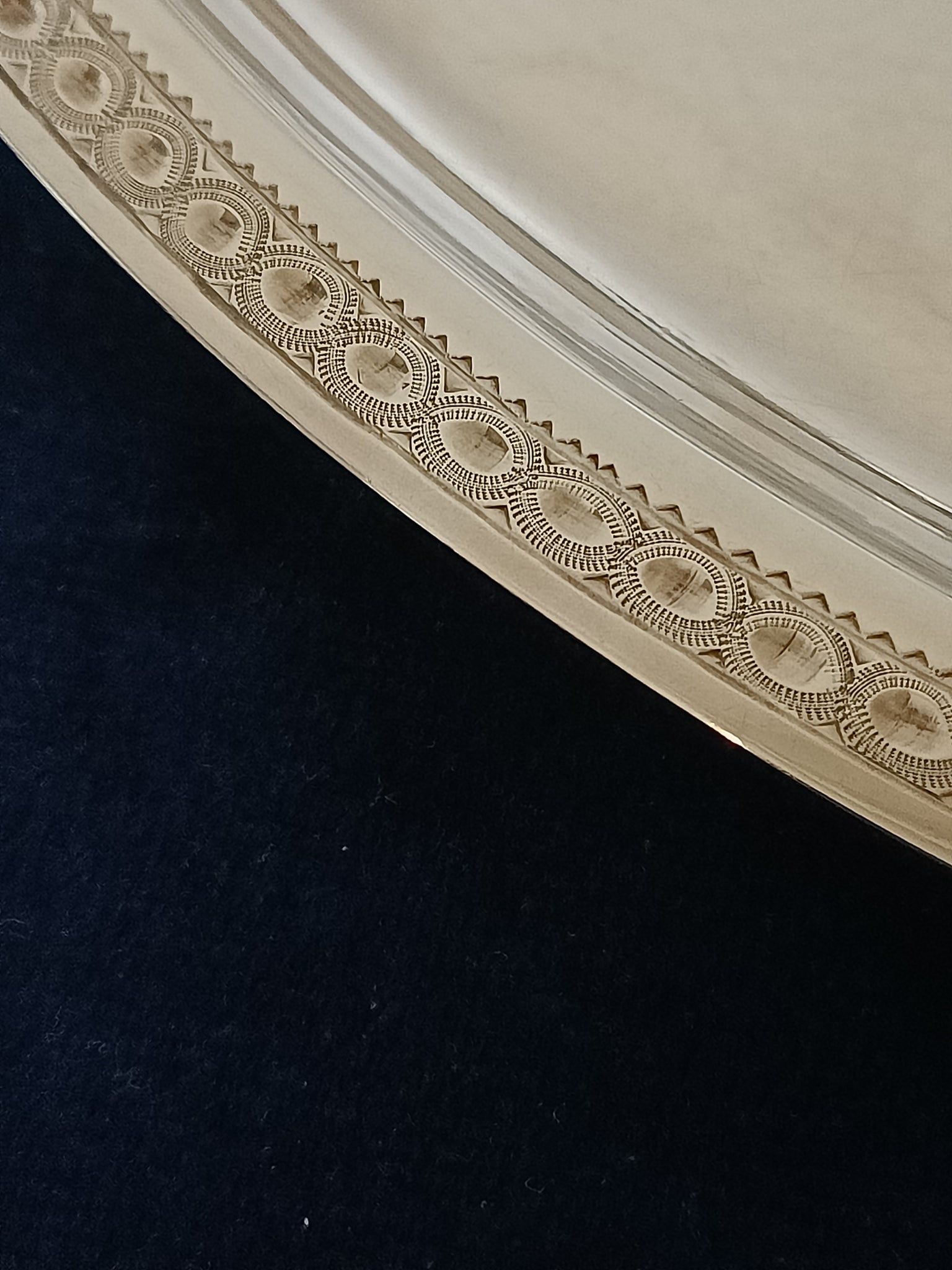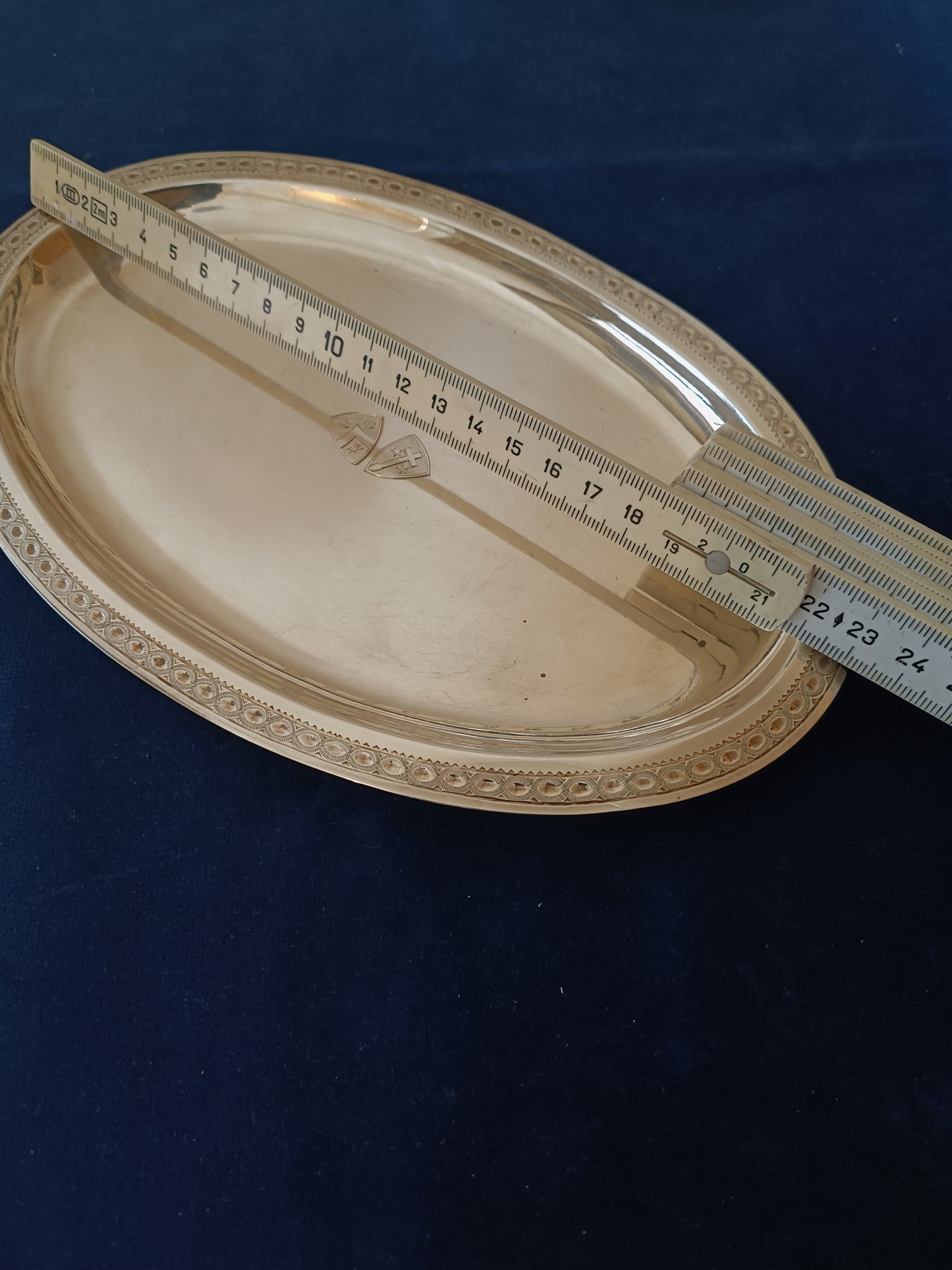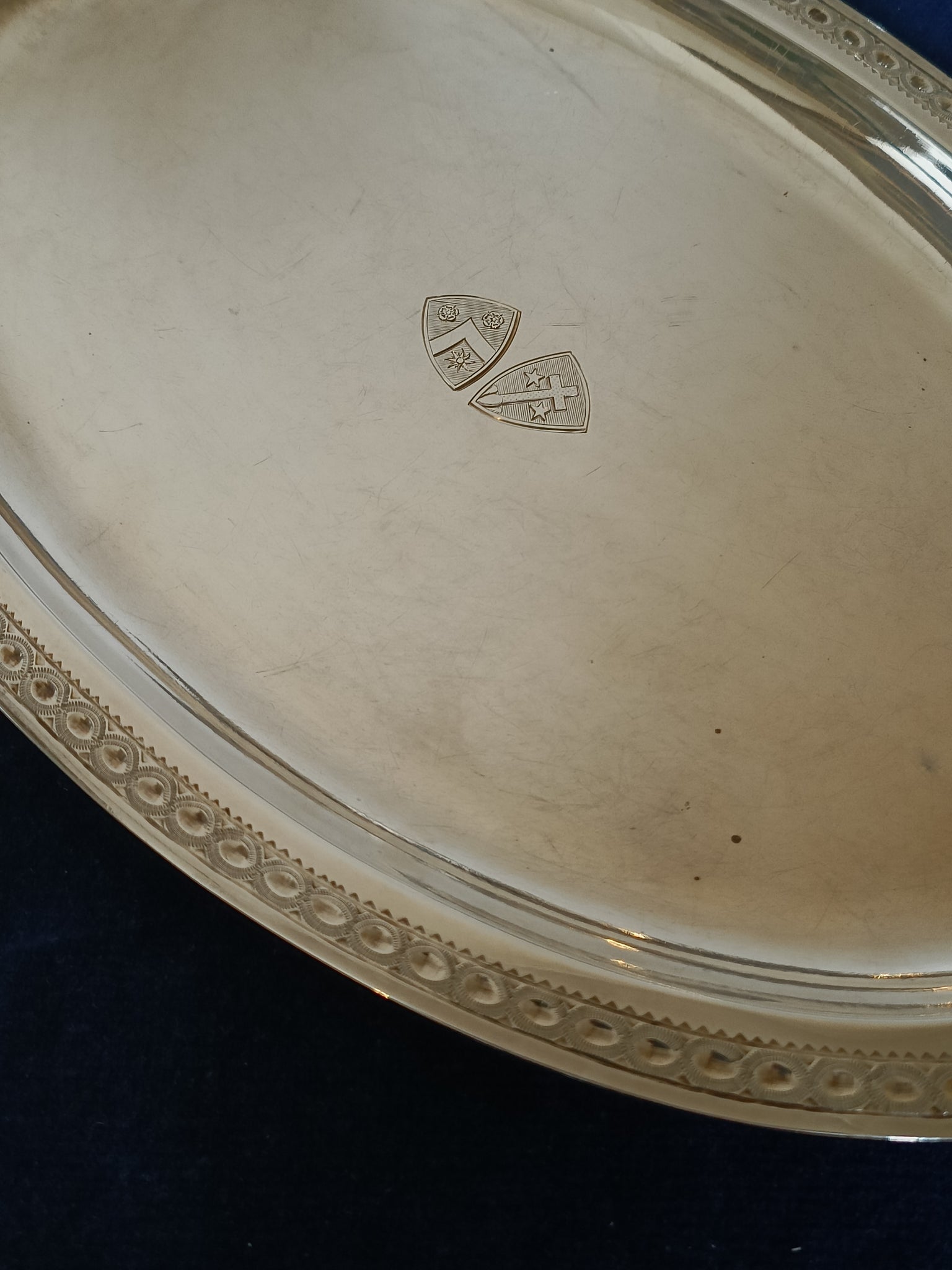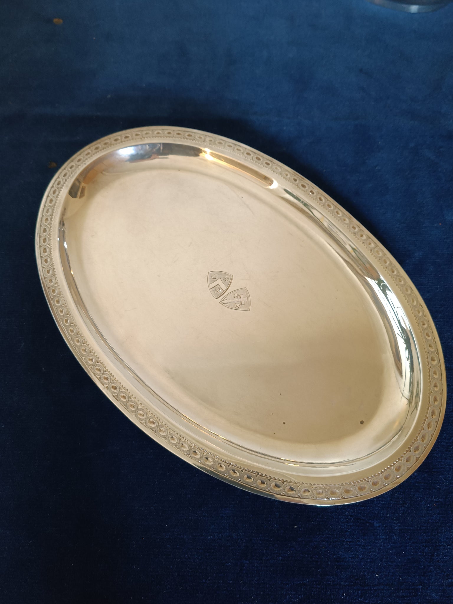 Ravissant petit plateau ovale en argent 0.800 de L. Jamin à Genève orfèvre . Dans le style vieux Lausanne avec armoirie probablement cantonal Vaudoise ou Valaisanne à identifier. Fin XIXÈME