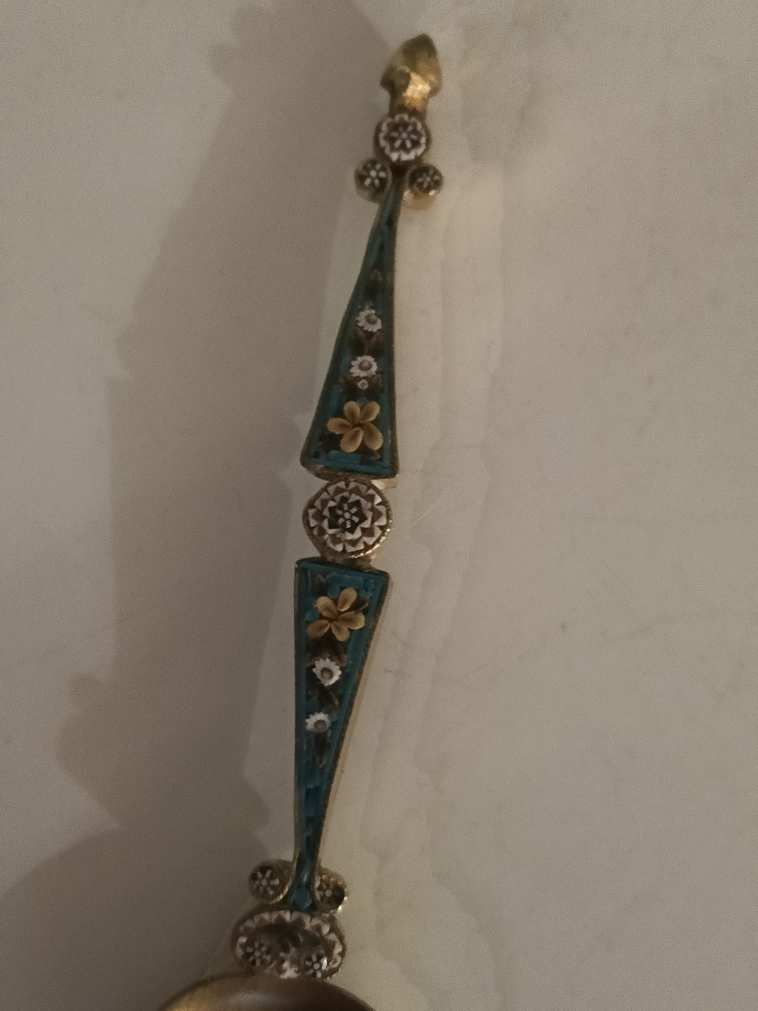 Micro mosaïque italienne et argent doré , cuillère de collection fin XIXÈME début Xxème, probablement souvenir du grand tour . En parfait état.